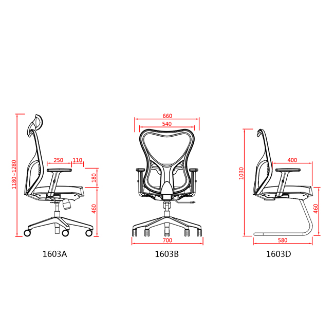 • Highback or Midback task chairs and Conference chair choice.