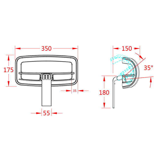 • 材料:尼龙玻纤头枕支架,PP头枕框。